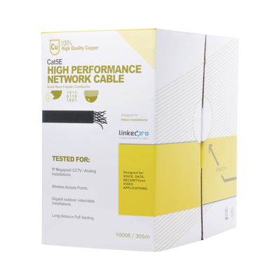 Bobina de cable de 305 m, ( 1000 ft ), Cat5e, alto desempeño, UL, para aplicaciones en CCTV, redes de datos. Uso Interior